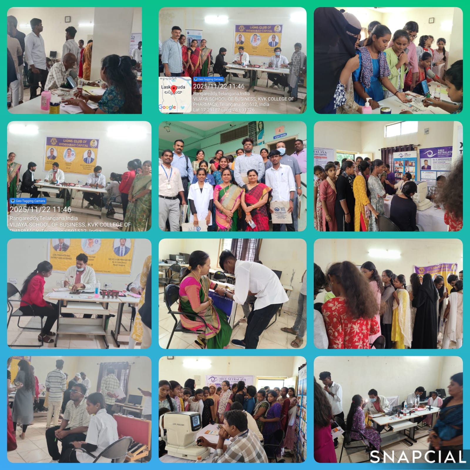 We Thank our Beloved Chairman, Sri.Satish Kadiyala Sir our Pillar of Strength for helping us in Hosting a Free Mega Health Camp, a vibrant and impactful initiative organized by Vijaya School of Business Management in association with Lions Club of Hyderabad Capital, President Mr.Ln.P.Vijay Sir and Health Partners *Care Hospitals, Clove Dental, Neuberg Diagnostics, and Netralaya Eye Care.* Under “Fit India Campaign , Initiative of AICTE “.The event transformed the campus into a hub of wellness, awareness, and community service.