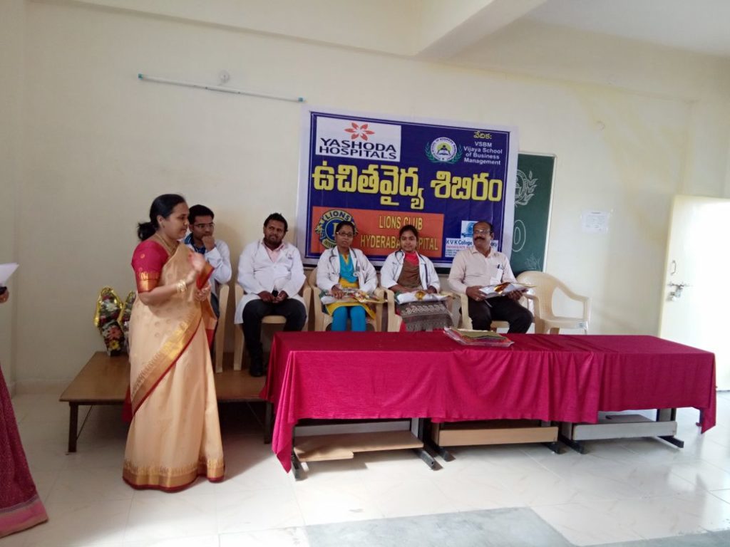 We Thank our Beloved Chairman, Sri.Satish Kadiyala Sir our Pillar of Strength for helping us in Hosting a Free Mega Health Camp, a vibrant and impactful initiative organized by Vijaya School of Business Management in association with Lions Club of Hyderabad Capital, President Mr.Ln.P.Vijay Sir and Health Partners *Care Hospitals, Clove Dental, Neuberg Diagnostics, and Netralaya Eye Care.* Under “Fit India Campaign , Initiative of AICTE “.The event transformed the campus into a hub of wellness, awareness, and community service.